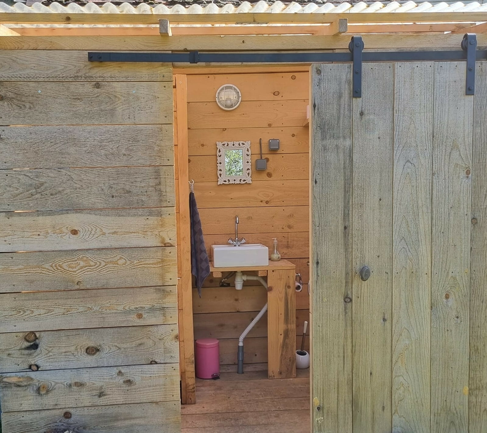Votre sanitaire privé (douche, lavabo et wc) est à coté de la caravane.