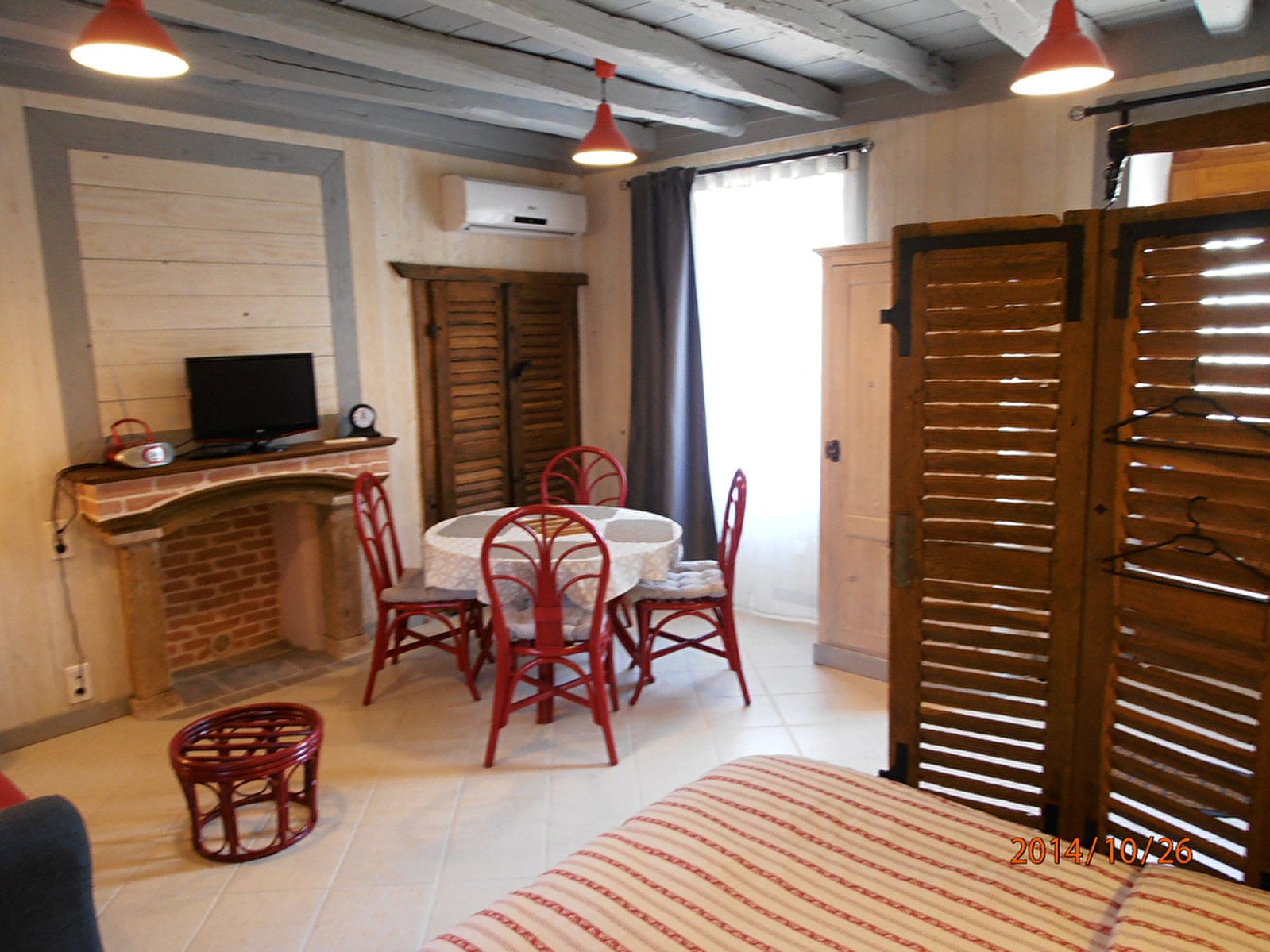 Une grande pièce climatisée composée d’un grand lit (160x200) séparable, d’un canapé convertible en lit (140x190) et d’un coin repas (4 pers). Cuisine toute équipée - Salle d’eau - WC.