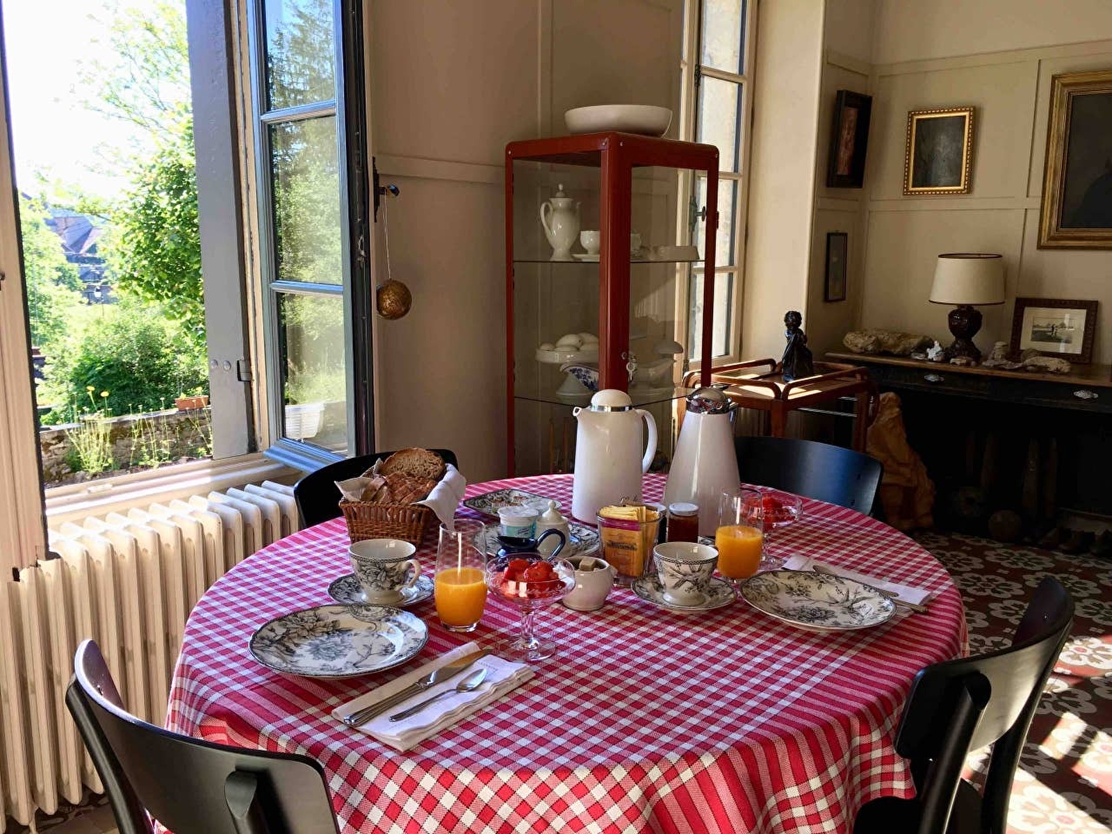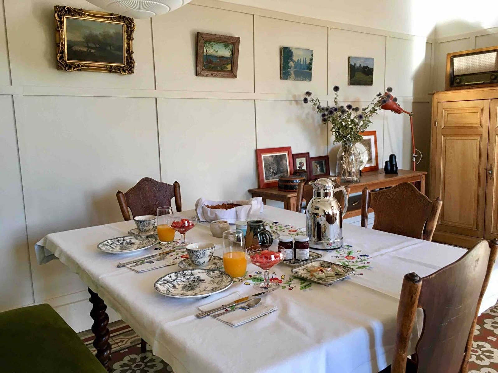 Chaleureuse et conviviale, la maison dispose d'un étage entièrement privatif avec 3 chambres d'hôtes dont l’une dispose d’une salle de bain privative avec baignoire/WC et une salle de bain avec baignoire/WC est commune aux 2 autres chambres.