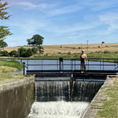 On commence par une petite initiation au pilotage du bateau jusqu'à la première écluse avec le navigateur.