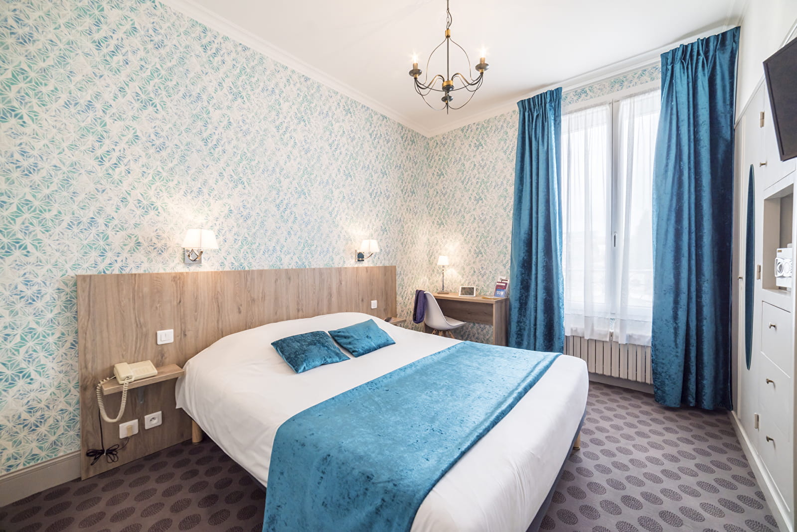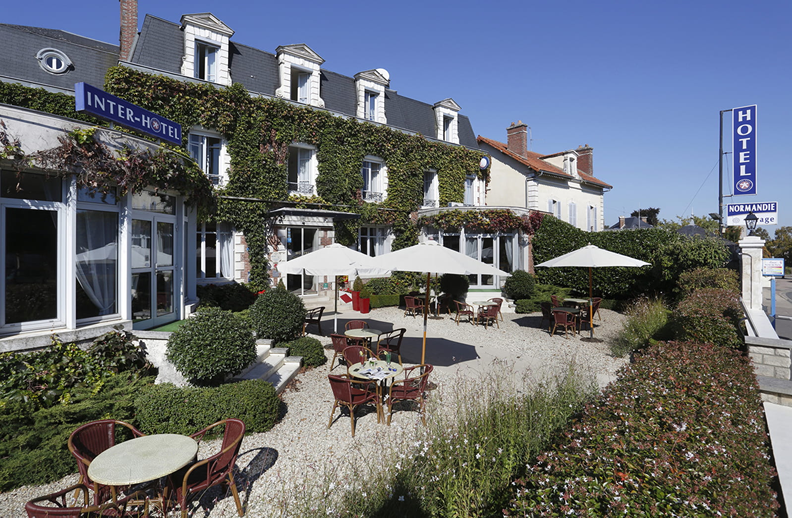 L'Hôtel Normandie, situé à l'entrée du centre ville offre le charme convivial d'une Hôtellerie traditionnelle. Décoration de style avec un équipement très moderne dans une maison bourgeoise du XIXe s. 47 chambres climatisées, calmes, situées sur terrasse et jardin, équipées de salles de bain modernes et fonctionnelles. Téléphone, wifi, beINsport 1 et 2, canal + et chaînes étrangères. Chambres Famille. Garage fermé pour voitures et vélos avec bornes électriques TESLA. ou parking public gratuit.