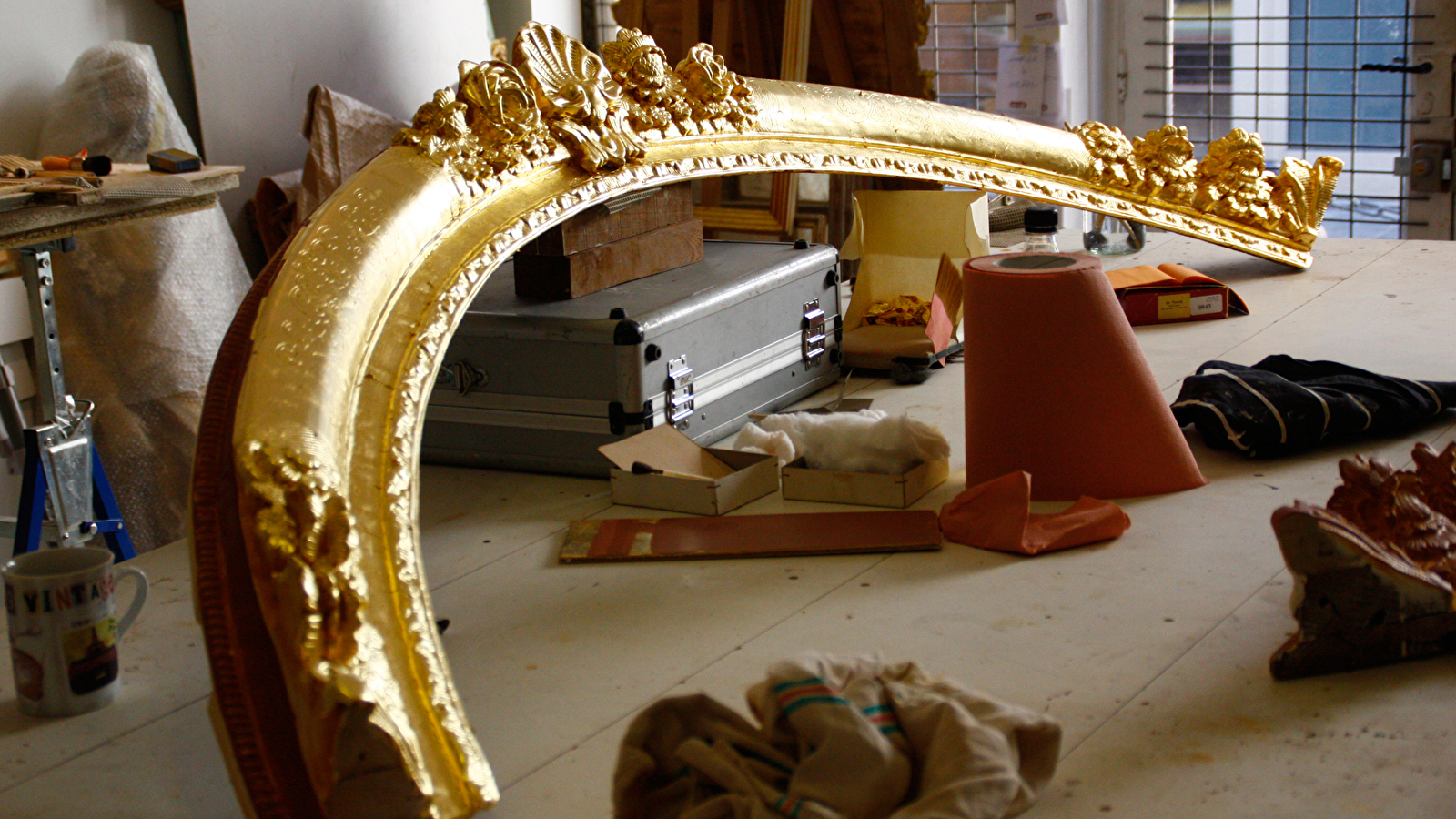 Découvrez le métier passionnant de la dorure sur bois dans un atelier au cœur d'un quartier pittoresque d'Auxerre. Voyez comment l'on restaure les objets d'art à la feuille d'or avec des techniques ancestrales et matériaux traditionnels.