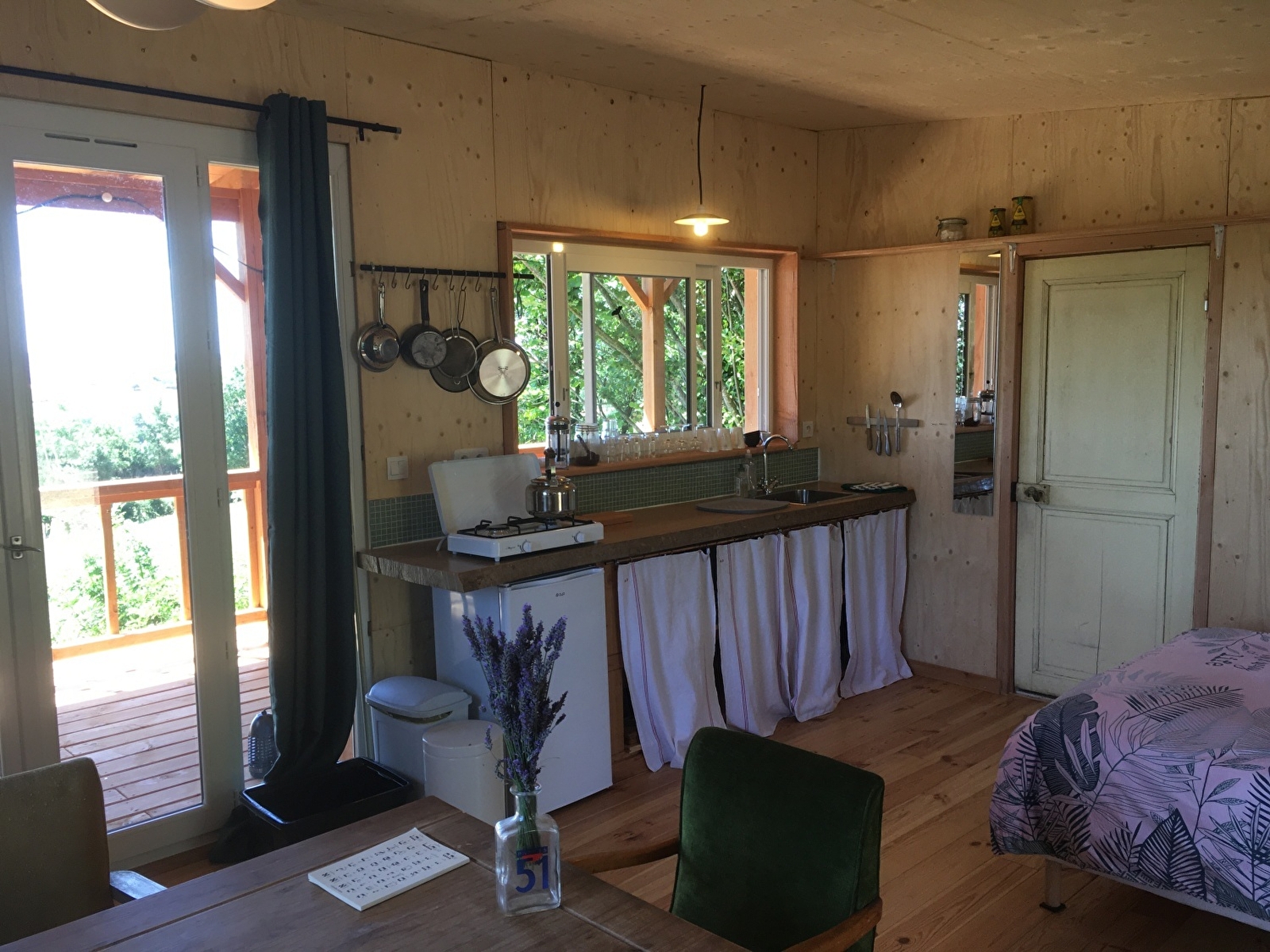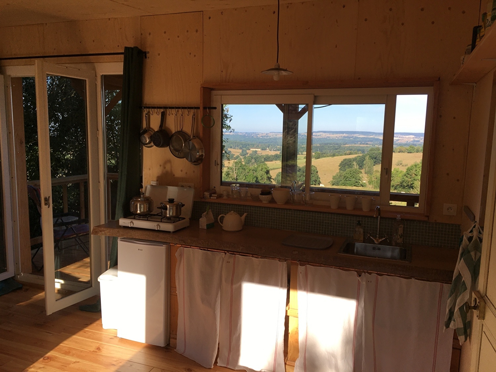 Petit chalet de 24m2 avec 15m2 de terrasse. Moderne et tout confort avec une vue imprenable sur le campagne nivernaise.
