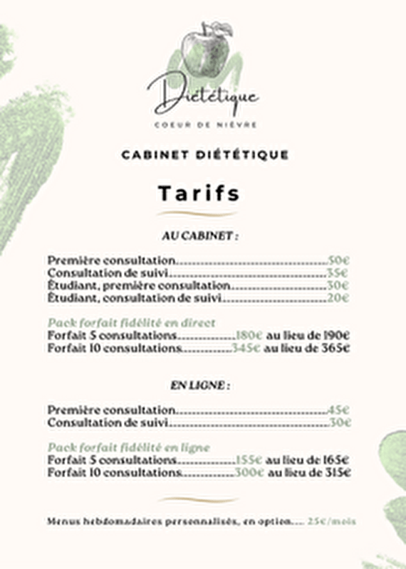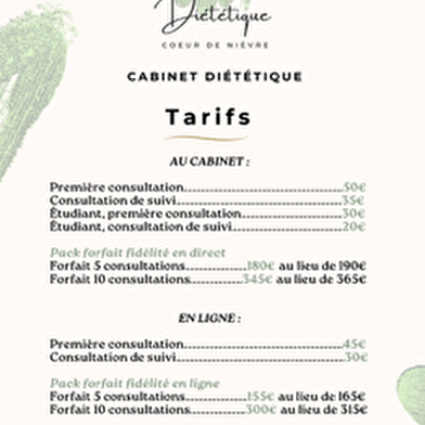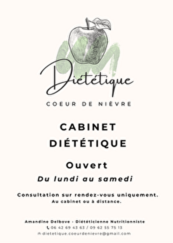 Prenez soin de vous et de votre santé, avec Diététique Cœur de Nièvre. Amandine, co-gérante de l'Hôtel - Restaurant vous propose de vous accompagner dans vos objectifs de perte de poids ou de rééquilibrage alimentaire. Prenez rendez-vous avec elle, en ligne ou directement au cabinet.