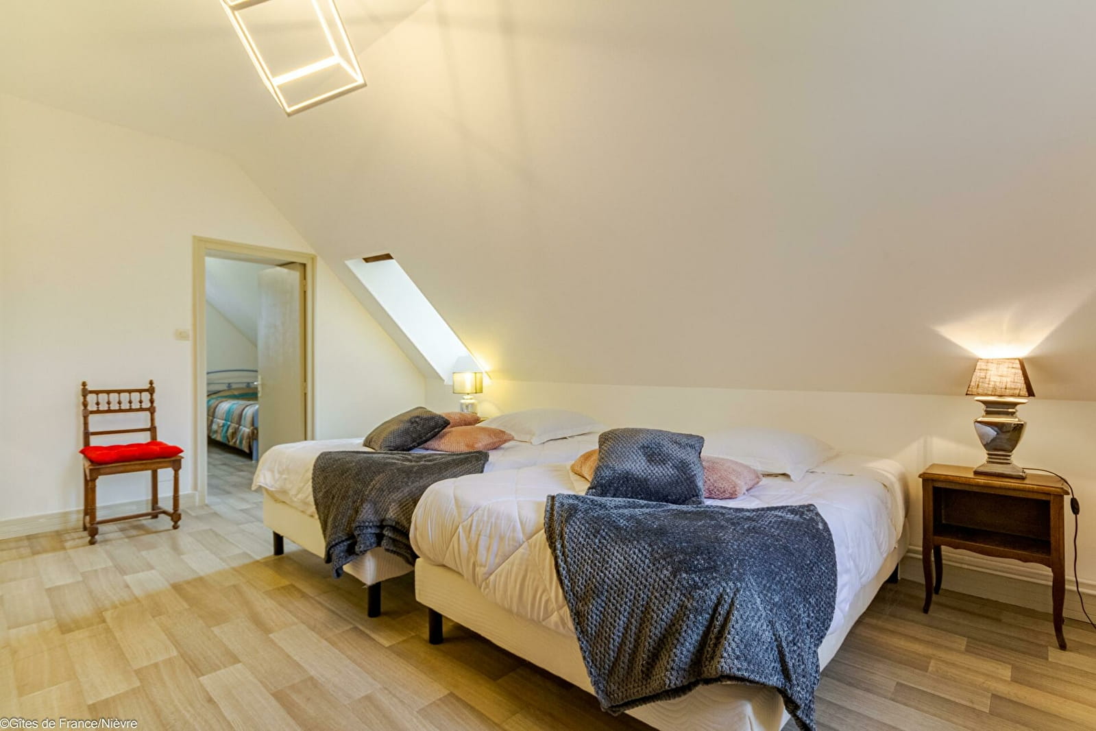 Au 1er étage, un baby-foot sur le palier avec bibliothèque, 1 chambre avec 2 lits 120x190 et 1 chambre avec 1 lit 140x190 + 1 lit 90x190.