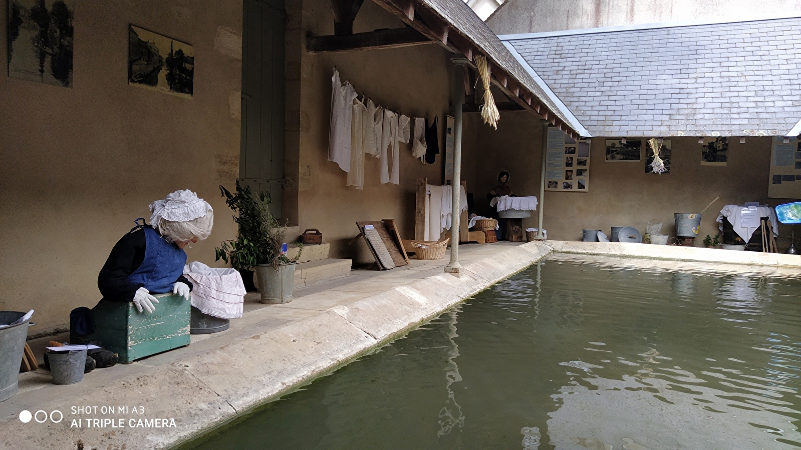 On y retrace les différentes étapes du lavage du linge mises en situation grâce à des mannequins accompagnés des outils nécessaires à ce travail.