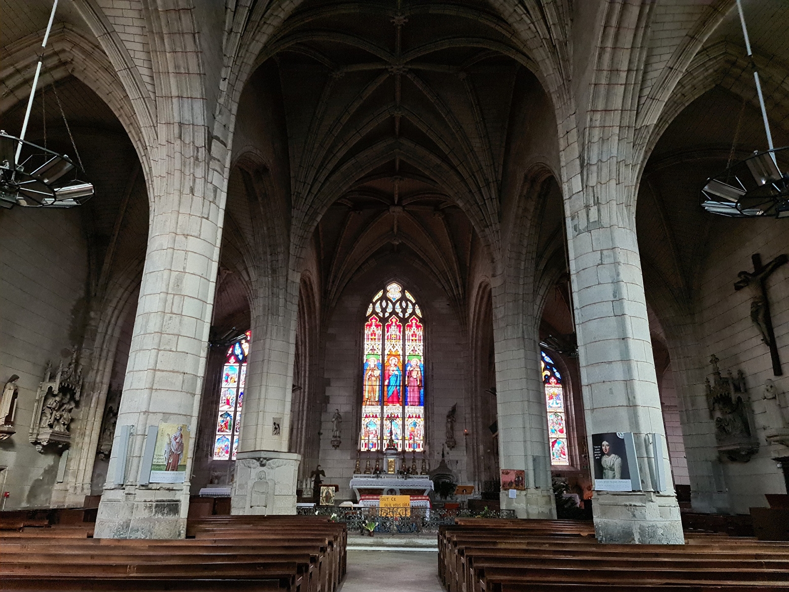 L'église comporte également trois chapelles dont une est devenue la sacristie. A l'intérieur, on découvre le maître autel en marbre rose provenant de l'église de l'Abbaye de Corbigny, un lutrin en bois sculpté de style Louis XV (classé) provenant de l'ancienne chartreuse du Val-Saint-Georges, ainsi que 22 stalles du XIIe bordant le chœur.