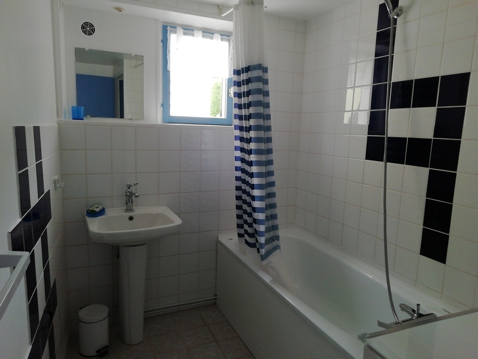 2 chambres à l'étage avec salle d'eau, salle de bain au rez-de-chaussée, wc à chaque étage, 2 lits en 140, 1 lit en 90.