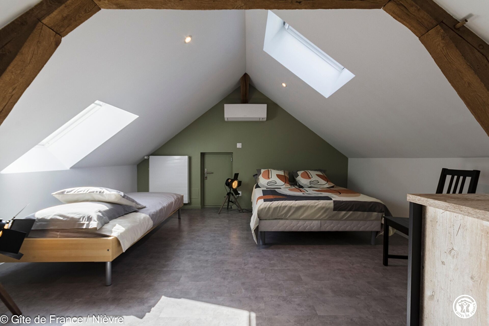 Cette ancienne maison forestière réhabilitée en gîte, à l'orée de la forêt, vous assure le calme et un séjour en parfaite communion avec la nature. Gîte tout récemment rénové, comprend une cuisine intégrée et équipée , un séjour, 2 chambres dont 1 chambre avec 1 lit 140x190, et 1 chambre avec 1 lit 160x200 + 1 lit 90x190. Salle d'eau avec wc. Rez-de-chaussée accessible aux personnes à mobilité réduite. A l'étage, 1 chambre comprenant 1 lit 140x190 et 1 lit 90x190 ainsi que la 2ème salle d'eau (douche).