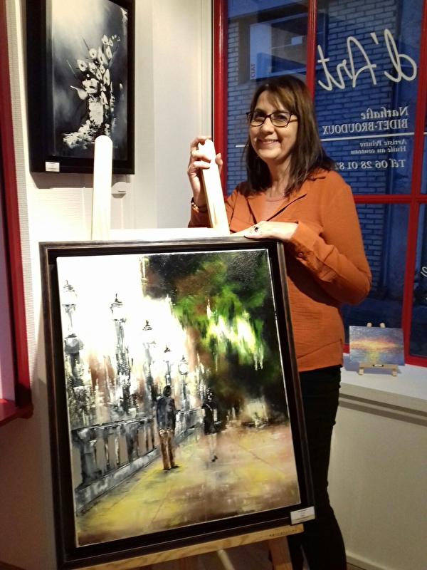 Nathalie Bidet-Broudoux, artiste peintre, ayant ouvert sa galerie d’art « voyage sur toiles » , travaille sur toiles à l’huile et au couteau avec des atmosphères différentes, chatoyantes et stylisées avec douceur et sensibilité, telle une incitation au voyage, guidée par ses inspirations et ses associations de circonstances, véhiculant une palette émotionnelle à portée des yeux et de l’âme, ou l’imagination flotte et vogue.