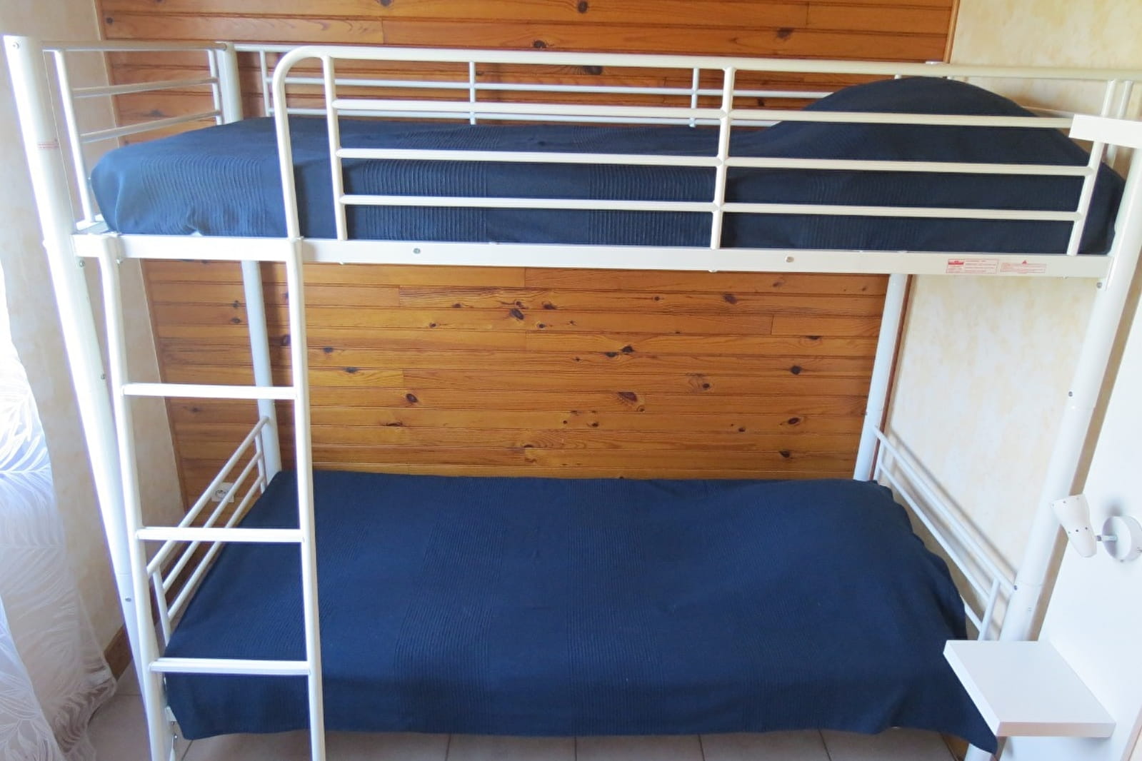 - 4 chambres dont 2 ch (1 lit 140 chacune), 1 ch (2 lits 90), 1 ch (2 lits 90 superposés + douche à jets+ vasque sur meuble à tiroirs et miroir, + wc séparé,