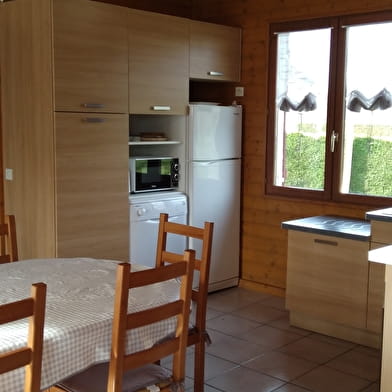 Maison à ossature bois de plein pied indépendante pouvant accueillir jusqu'à 8 personnes dans terrain clos arboré comprenant :