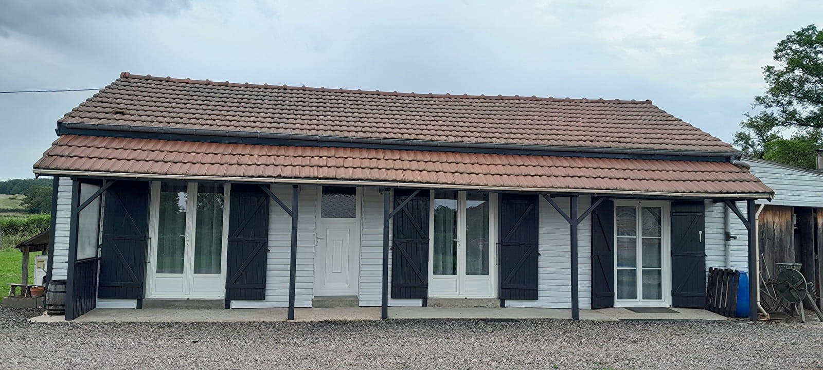 Petite maison agréable située en campagne disposant de deux chambres, salle de bain, salle à manger, salon et une petite cuisine.