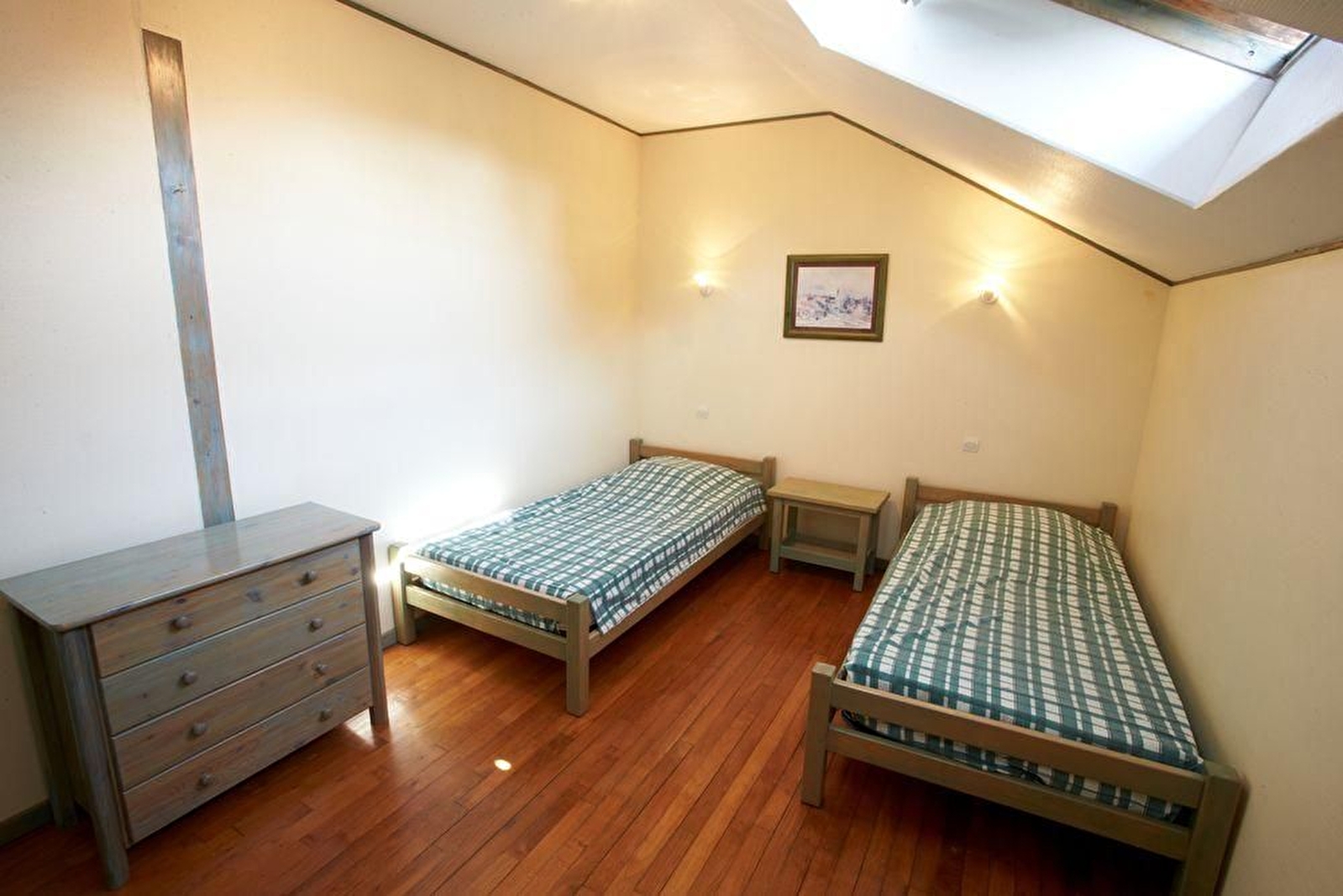 Maison indépendante au coeur du village. Au rez-de-chaussée: séjour, cuisine, 1 chambre (lit 140), salle d'eau, wc. Au 1er étage : 2 chambres (4 lits 1 pers), salle de bains, wc. Vaste terrain clos au calme 3000 m2.