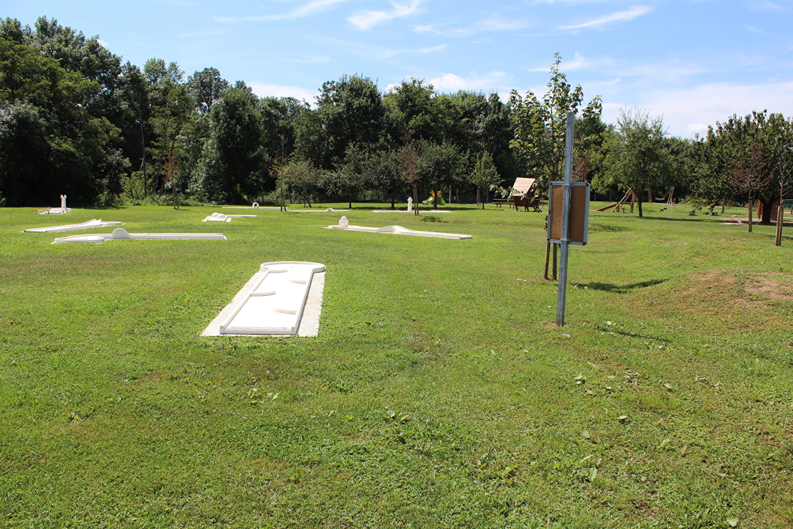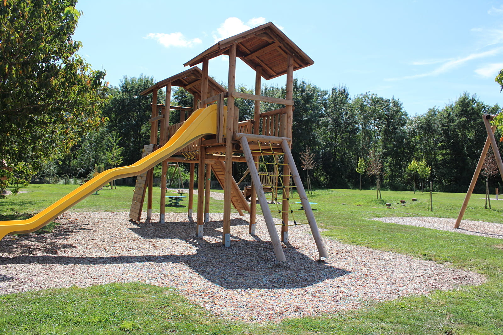 14 jeux différents en bois (cabane, toboggan, balançoires, tourniquet, cabanes, tyrolienne...), et un Mini Golf ! (voir à l'accueil de la piscine pour le matériel, tarif : 2€ par personne).