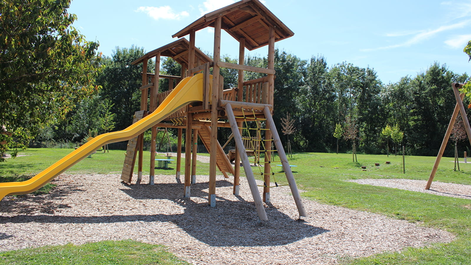 Ouverte le 14 juillet 2023, la plaine de loisirs est une aire de jeu pour les enfants doublée d’un parcours sportif type Vitasanté, à proximité de la piscine, du camping et de sa guinguette.