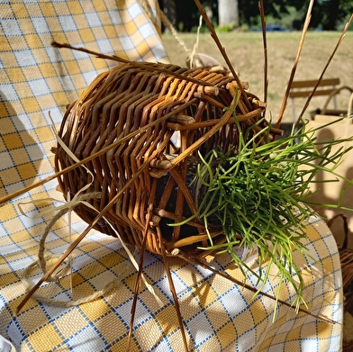 Pour Claudine Pellenard, l'osier est un poème que lui inspirent les lieux où on le trouve et les créations qu'il suscite...De ses balades en bord de Loire elle confectionnera des poissons, des mangeoires pour les oiseaux et bien d'autres objets...
