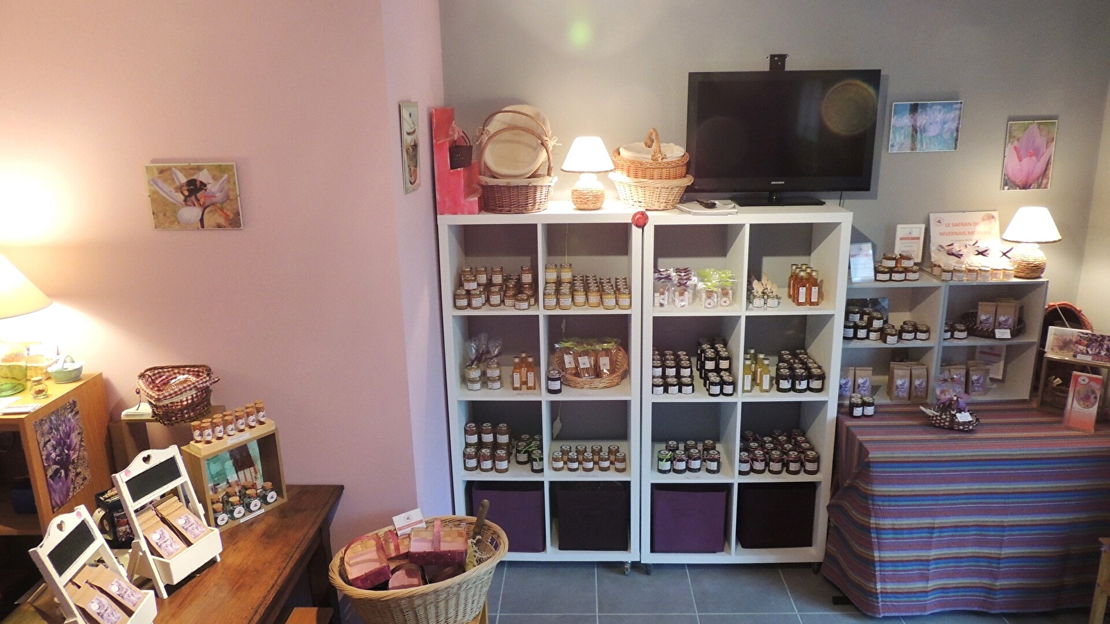 Tarifs :Vous trouverez en vente directe du safran et des produits safranés réalisés sur l'exploitation : confitures, gelées de thé ou de fruits, vinaigre, moutarde, fleurs de sel... Une boutique en ligne est proposée.