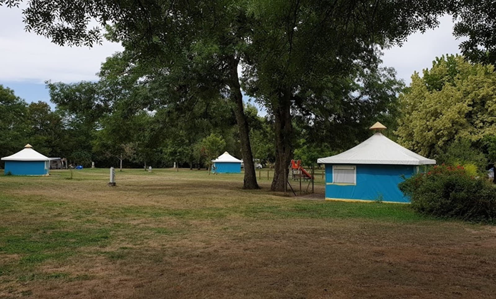 Emplacements ombragés et location de 4 bungalows toilés de 5 couchages. Aire de vidange camping car.