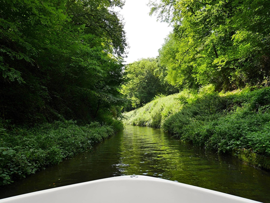 Embarquez avec votre famille ou vos amis, sur ce bateau électrique pouvant accueillir jusqu'à 12 personnes, et partez pour un aller-retour sur le canal du Nivernais à la découverte de l'un de ses trésors, au détour d'un tunnel sous une végétation luxuriante.