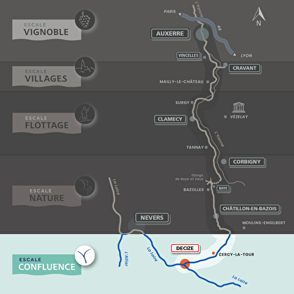 Outre la ville de Decize qui à elle seule est unique, l'Escale Confluence renferme plusieurs pépites dont le Musée de la Mine à La Machine, l'Église romane Saint-Laurent à Verneuil et la jolie petite cité de Cercy-la-Tour.