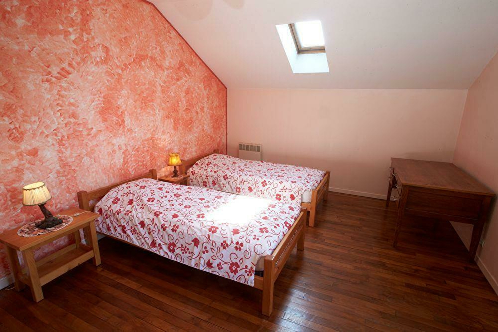 Maison indépendante au coeur du village. Au rez-de-chaussée: séjour, cuisine, 1 chambre (lit 140), salle d'eau, wc. Au 1er étage : 2 chambres (4 lits 1 pers), salle de bains, wc. Vaste terrain clos au calme 3000 m2.