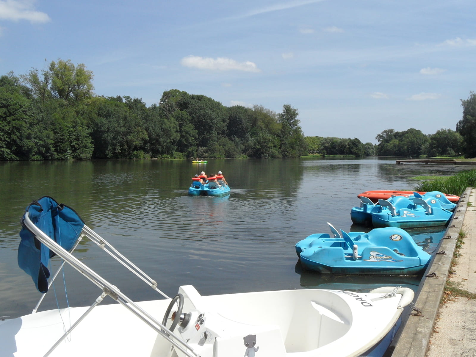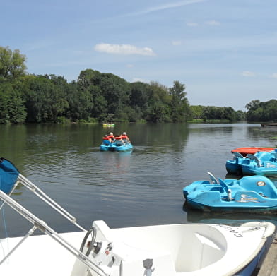 Base de loisirs située au bord de l’eau et à côté du camping, avec jeux de plein-air gratuits, location de pédalos, paddles, bateaux électriques, minigolf et échiquier géant.