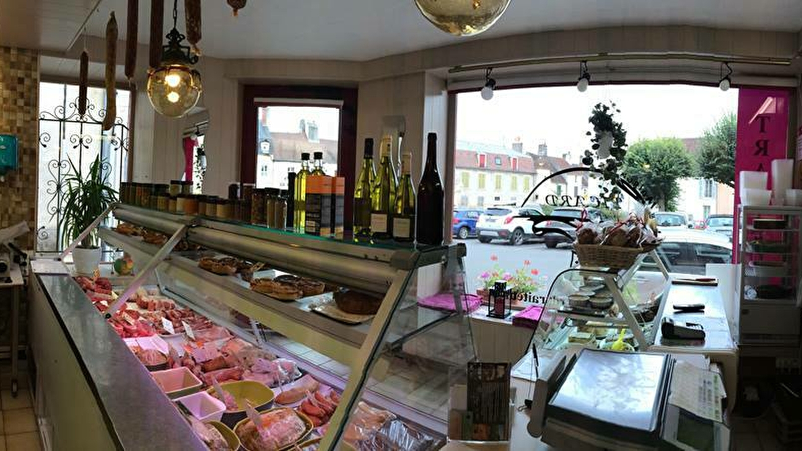 Boucherie, charcuterie, traiteur, fabrications maison, produits de la région. Repas extérieurs.