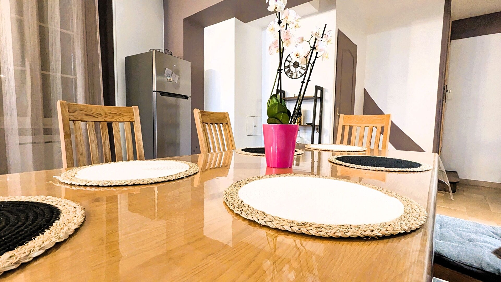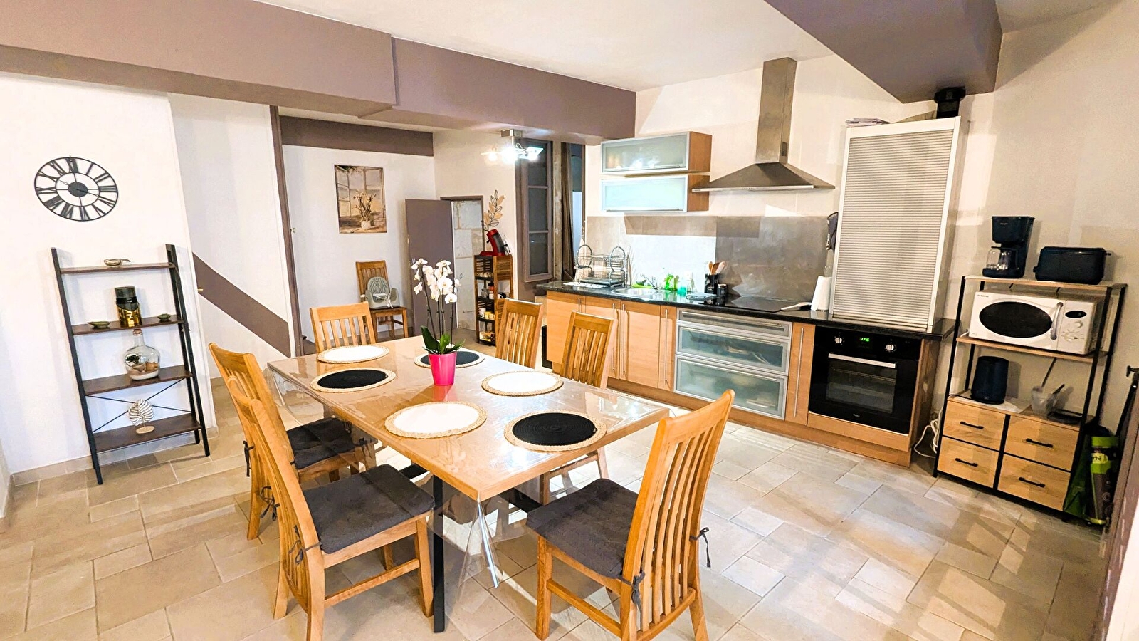 En entrant, vous découvrirez une pièce à vivre conviviale avec cuisine équipée ouverte sur la salle à manger et sa grande table familiale.
