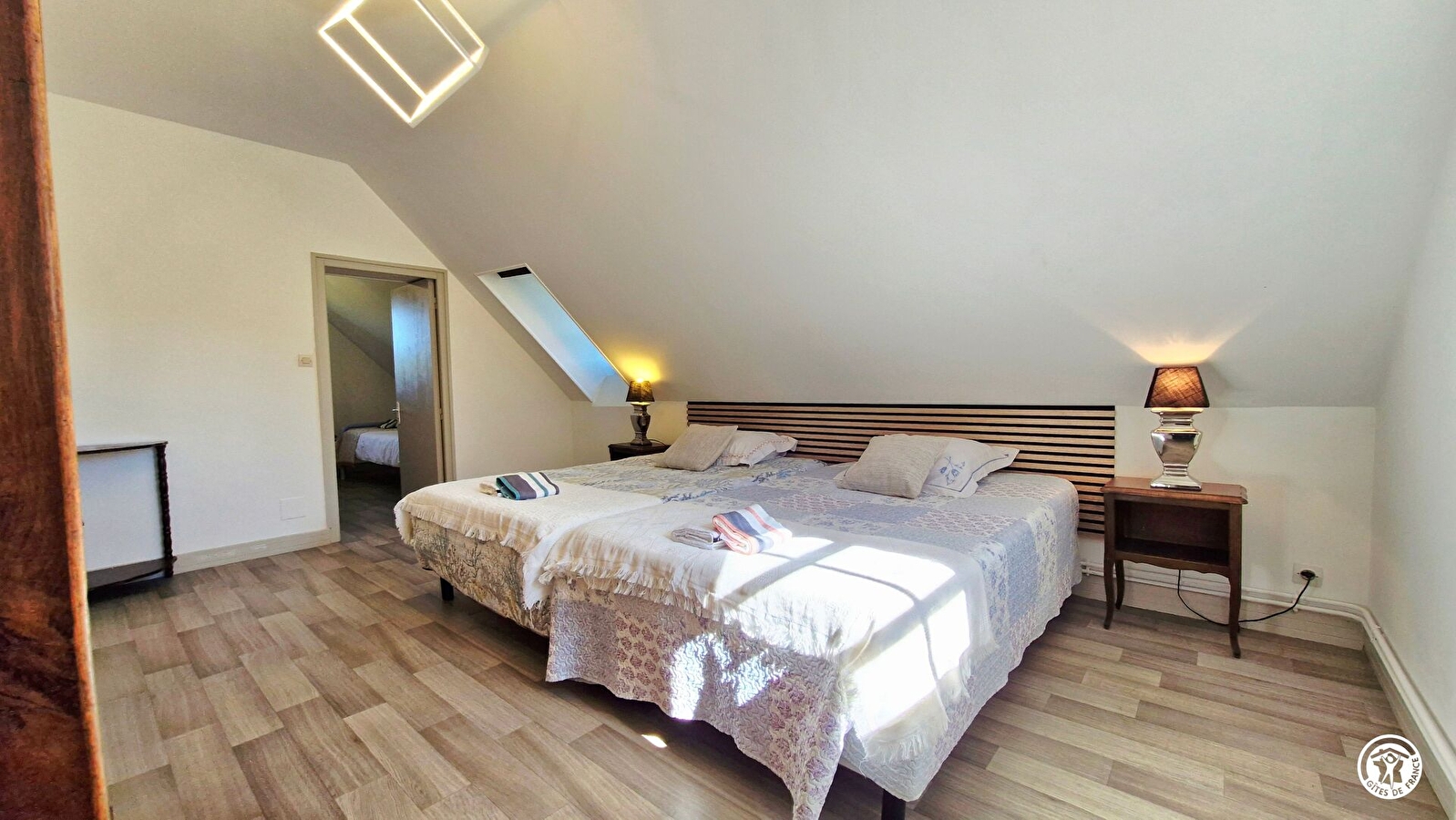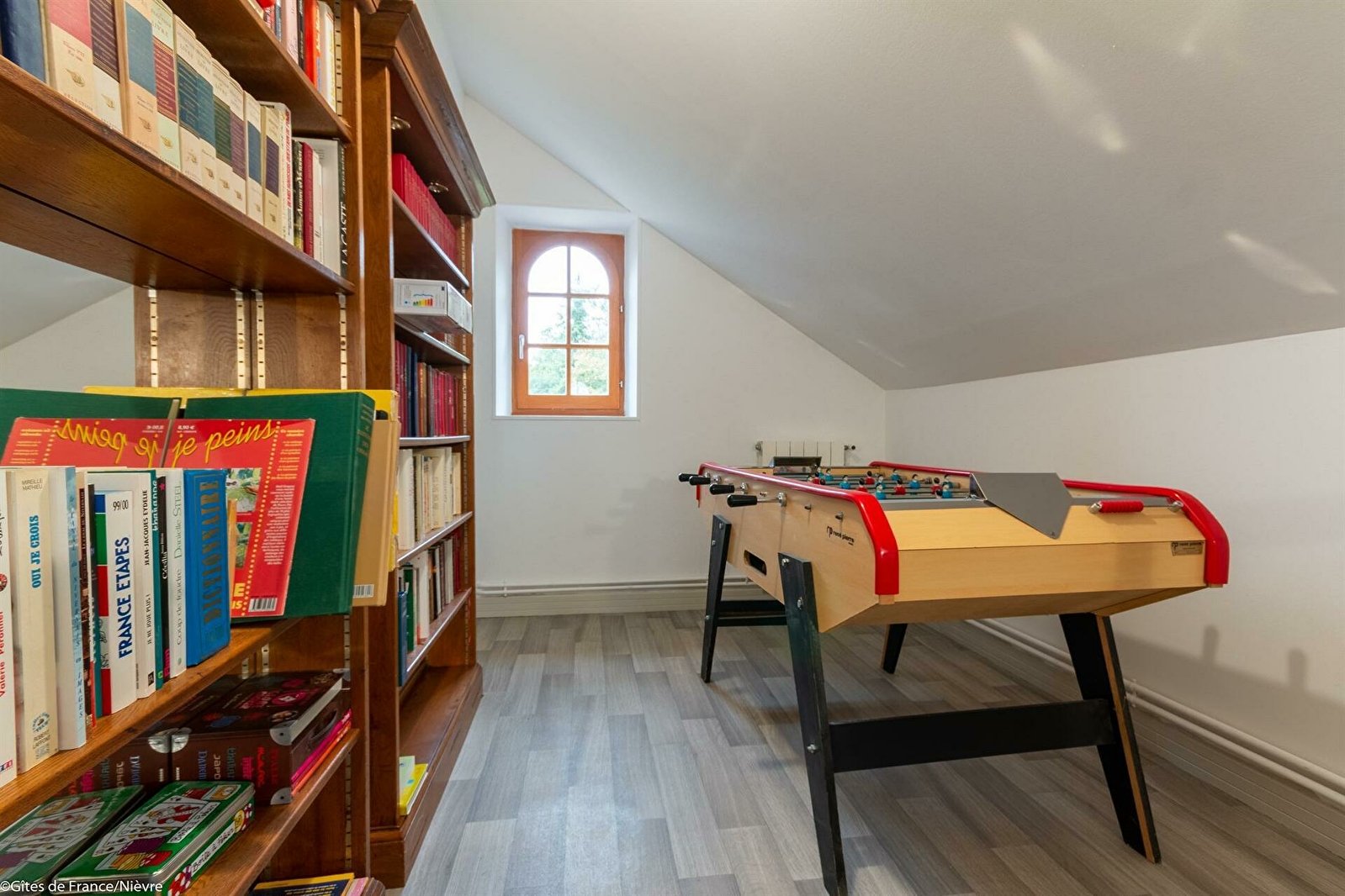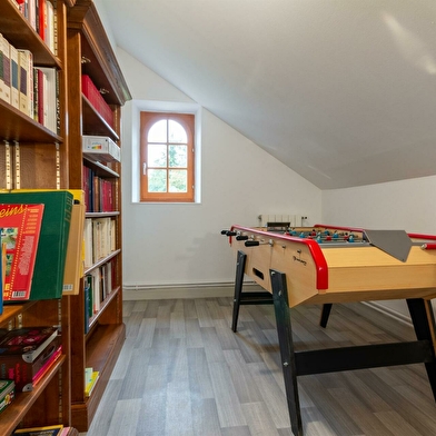Au 1er étage, un baby-foot sur le palier avec bibliothèque, 1 chambre avec 2 lits 120x190 et 1 chambre avec 1 lit 140x190 + 1 lit 90x190.