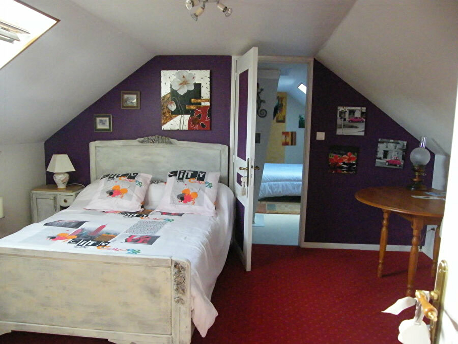 A l'étage d'une maison individuelle 3 chambres meublées avec soin, 3 lits de 140 pour trois chambres. Chauffage électrique, moquette au sol, chambres mansardées avec Vélux et rideaux opaque pour un meilleur sommeil. Literie confortable, possibilité d'ajouter un lit pour bébé. Deux chambres sont équipées avec une table ronde, 3 chaises, télé avec décodeur TNT, la troisième chambre possède un bureau d'angle et un dressing. WC et salle de bain commune avec douche, lavabo, commode et petit meuble bas pour recevoir vos accessoires de toilette, sèche cheveux à disposition.