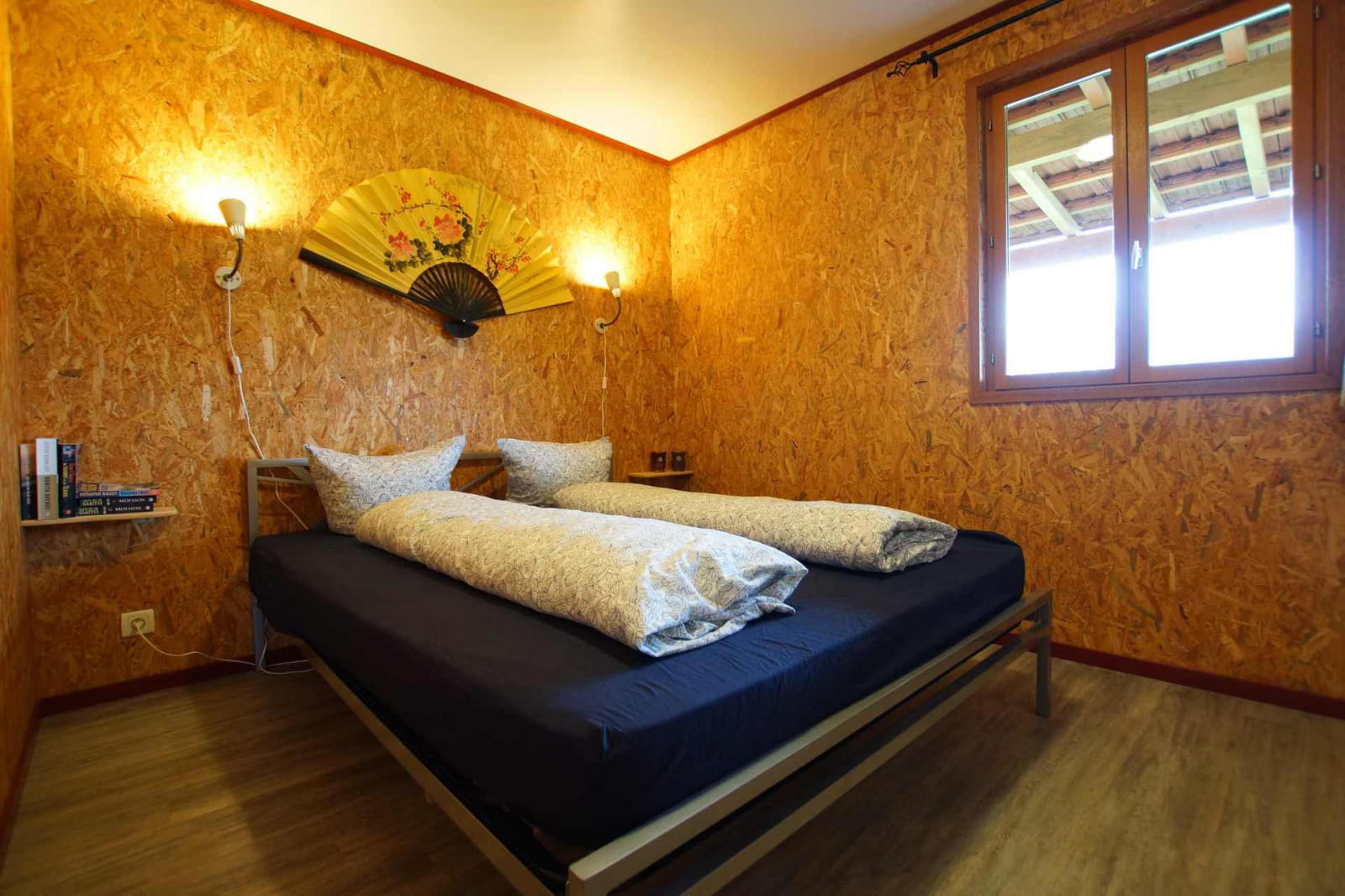 4 chalets (max.5 personnes par chalet) avec salon, cuisine aménagée (cafetière, micro-ondes, réfrigérateur, barbecue, etc.), salle d’eau, WC, 2 chambres (1 lit 2 personnes + 1 lit 2 personnes et lit superposé pour 1 personne) et terrasse. Les lits disposent de couettes et il y a la possibilité de location des draps.