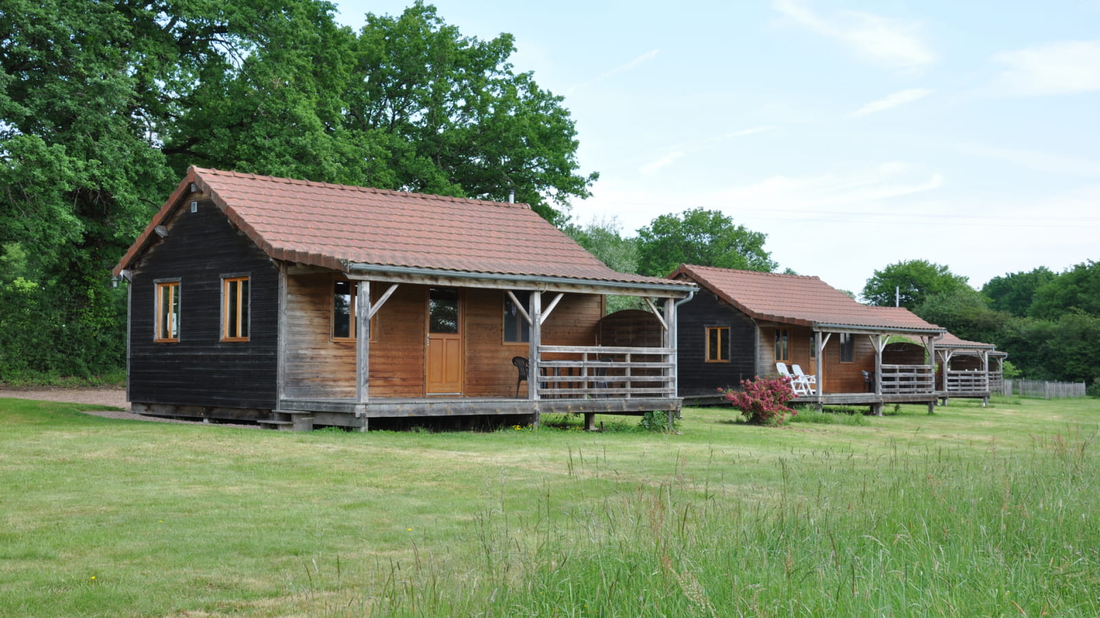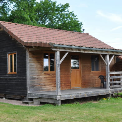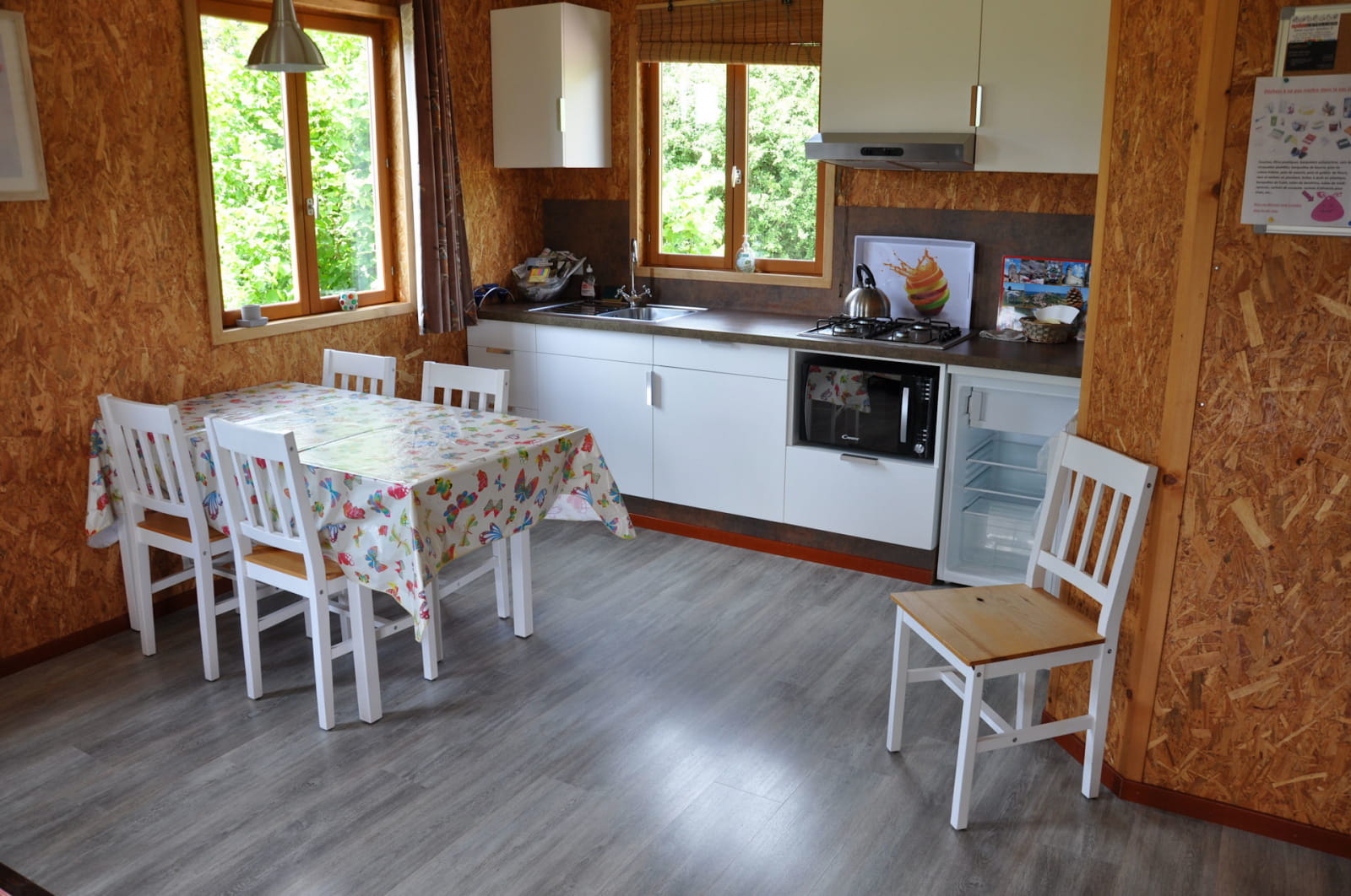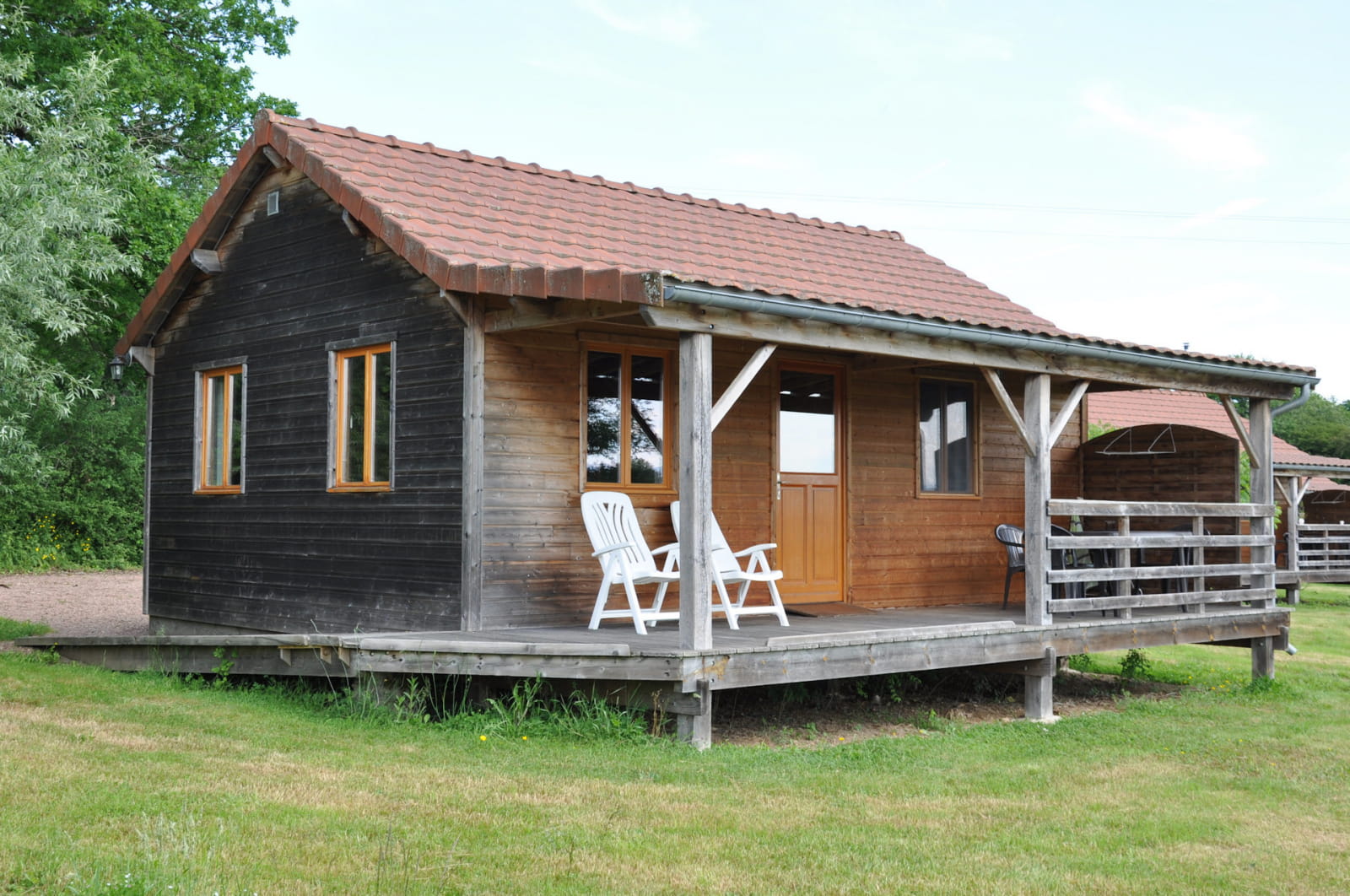 4 chalets (5 personnes) avec salon, cuisine aménagée( cafetière, micro-ondes, réfrigérateur, barbecue), salle d’eau, WC, 2 chambres (2 lits deux personnes + lit 1 personne) et terrasse. Les lits disposent de couettes. Un chalet est adapté pour personne à mobilité réduite. Restaurant sur place. Piscine dans le parc (6x12m) et trampoline pour les enfants. Possibilité de location de draps. Capacité 20 personnes.
