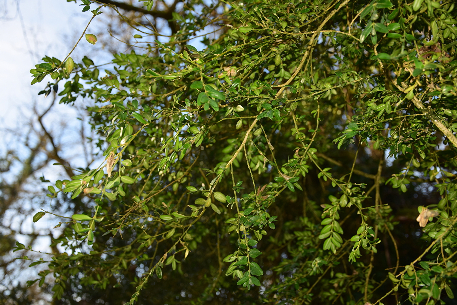 Regardez bien : les arbres qui entourent le chemin sont en effet des buis d'une taille que l'on n'a pas l'habitude de voir pour cette essence traditionnelle d'ornement des jardins !