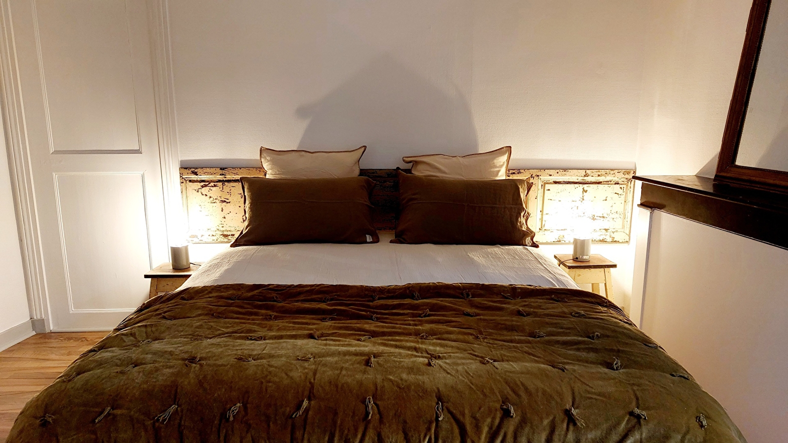 Dans cette ancienne maison à pans de bois du 17e siècle, typiquement auxerroise, vous profiterez d’un appartement de 52 m² pouvant accueillir jusqu’à 4 personnes (lit Queen Size de très bon confort et canapé convertible avec sommier et vrai matelas).