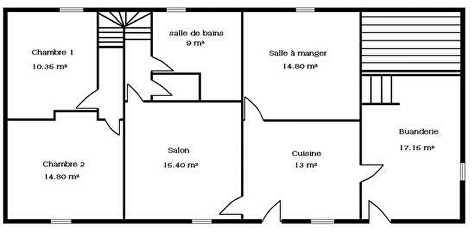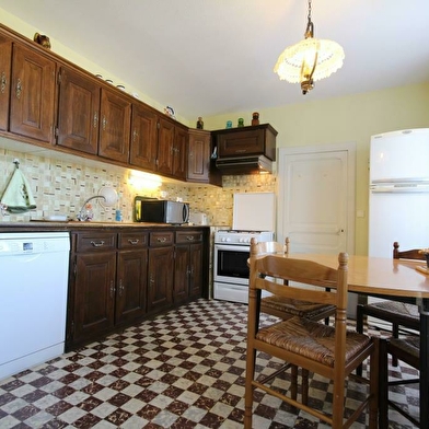 Maison individuelle située au bord de la D945 : cuisine, salle à manger, salon, buanderie avec lave-linge et sèche-linge, wc séparé, salle de bains (baignoire). Au 1er étage, 1 chambre avec 1 lit 120x190 et 1 canapé convertible pour 2 personnes, et 1 chambre avec 1 lit 140x190. Ping-pong, 2 VTT. Meubles de jardin, garage, cave. Grande cour close de 2500 m².