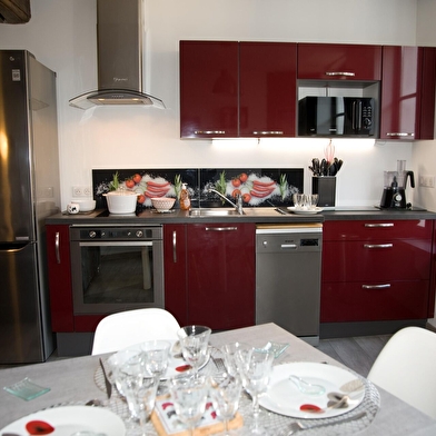 Notre meublé situé au 1er étage sans ascenseur, est composé d’une pièce de vie de 26 m2 avec cuisine intégrée entièrement équipée, d’un coin salon avec TV/ DVD et d’un convertible Rapido 140. Vous disposez d’une chambre spacieuse avec lit 160 desservant une salle d'eau avec douche à l'italienne. WC séparés et fermés situé dans le couloir.