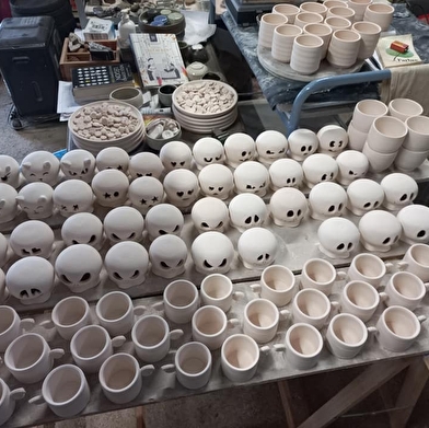 Articles céramiques, allant de l’utilitaire aux objets décoratifs, bijoux, carreaux...en Porcelaine, grès et Terres locales.