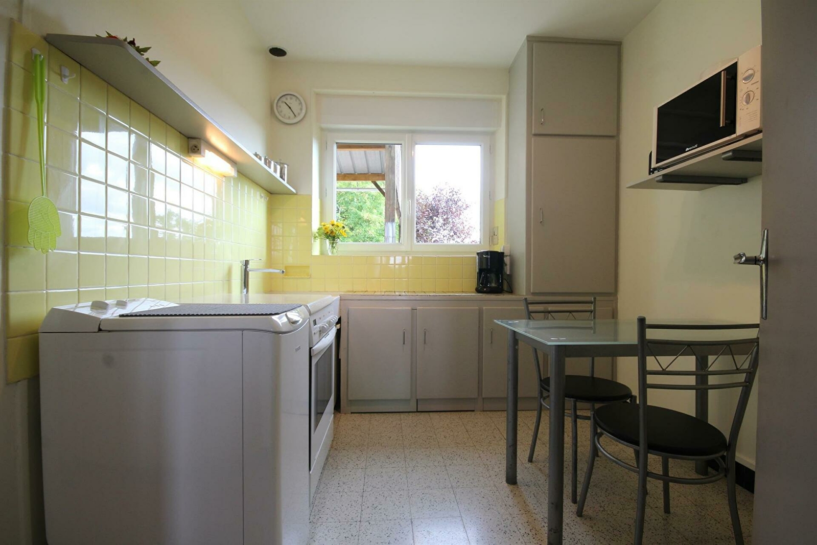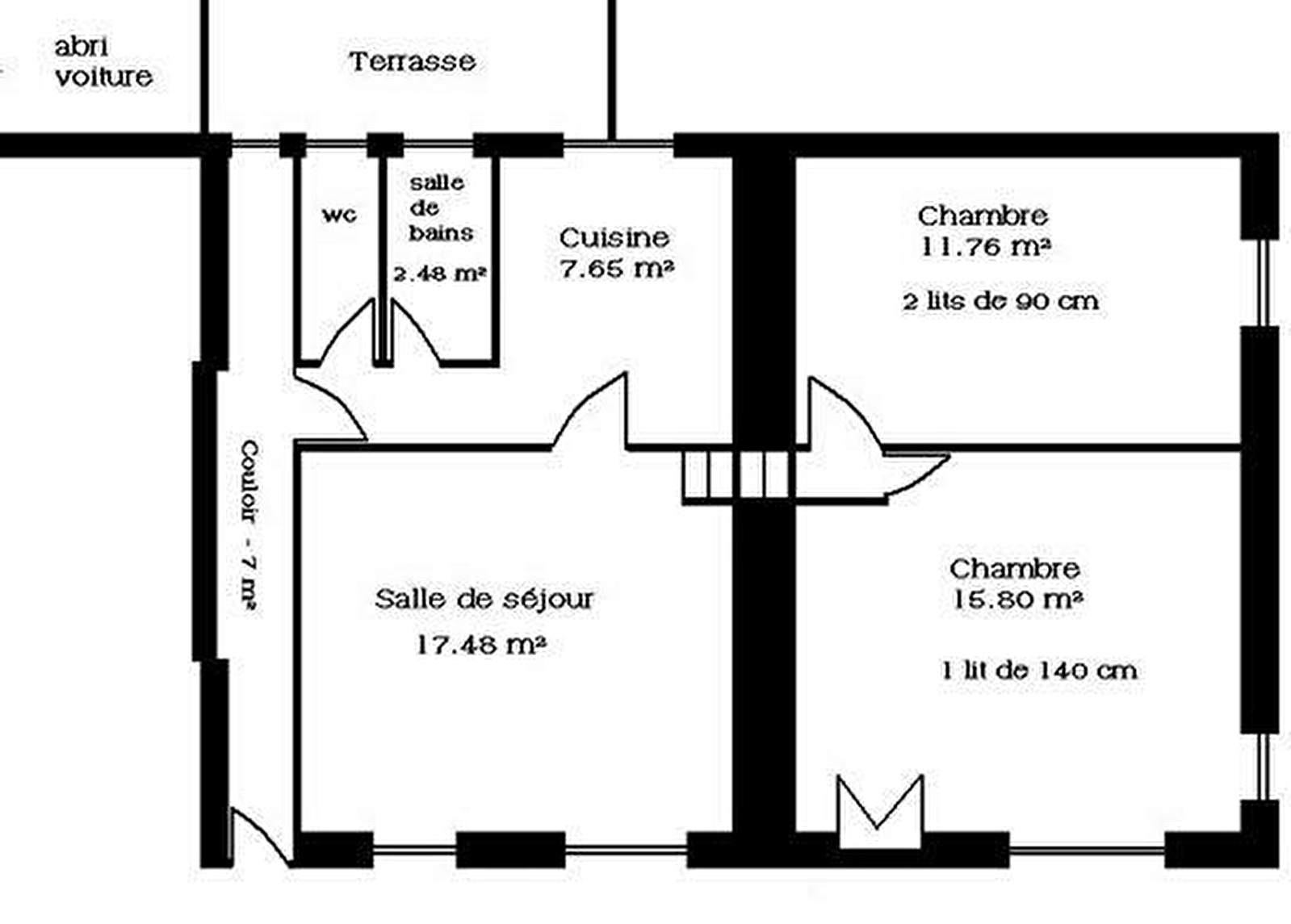 Séjour, cuisine, 2 chambres avec 1 lit 90x190cm dans l'une et 1 lit 140x190cm dans l'autre, salle de bains, wc indépendant, chauffage central facturé selon consommation. Abri voiture, terrasse, mobilier de jardin. Parking privé. Sur demande : lit bébé, chaise haute, baignoire enfant, matelas à langer, ping-pong.