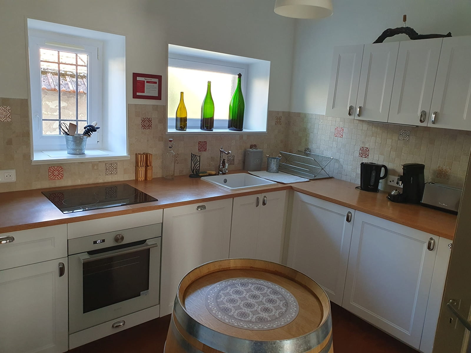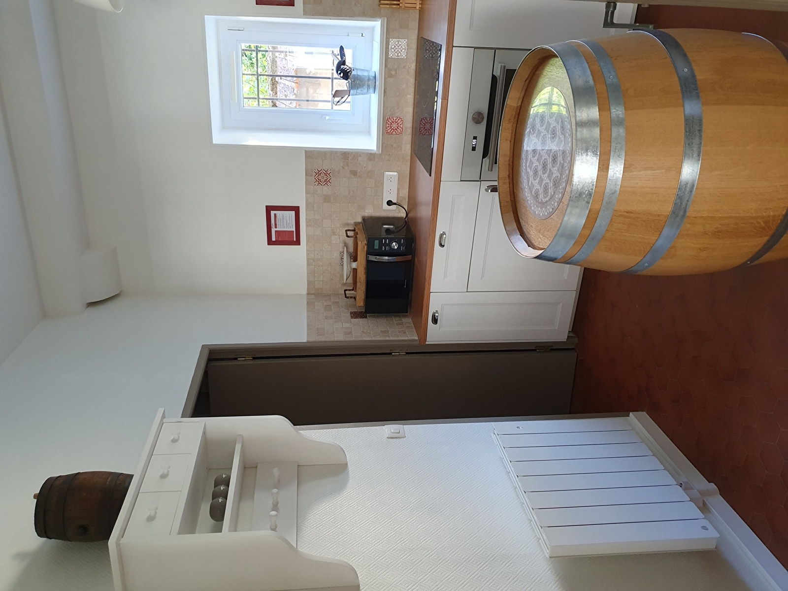 Cuisine entièrement équipée avec lave-linge. Wi-Fi , TV avec décodeur connecté et maison raccordés à la fibre.