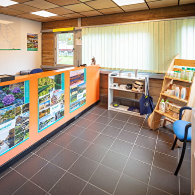 Point d'eau potable, kit de réparation, racks à vélo, aire de pique-nique, wc, douche, petite épicerie, aire de camping tente gratuite...